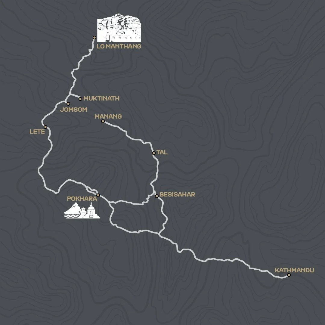 We are combining the restricted, semi-arid desert of Upper Mustang (the last forbidden kingdom) with the lush, vertical rock faces of the Annapurna Circuit (Manang). This is a "greatest hits" of Nepal, offering a level of technical off-road riding that surpasses our standard Ladakh itineraries.